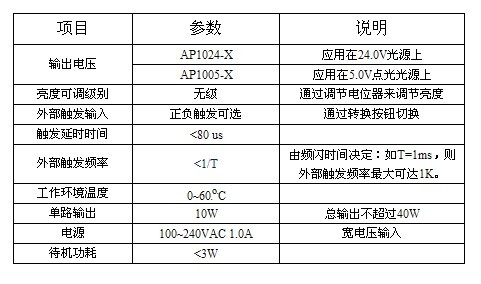 亮度無(wú)級(jí)控制;短路保護(hù);外部觸發(fā)輸入;